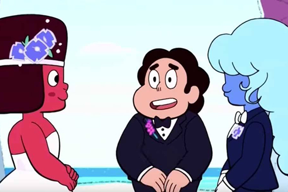 Há alguns dias, foi ao ar nos Estados Unidos um episódio de Steven Universe, do Cartoon Network, que mostrou o primeiro casamento lésbico das animações na televisão. Na cena, a união de Rubi e Safira foi celebrada por Steven, com discursos românticos relacionados à galáxia onde elas vivem.