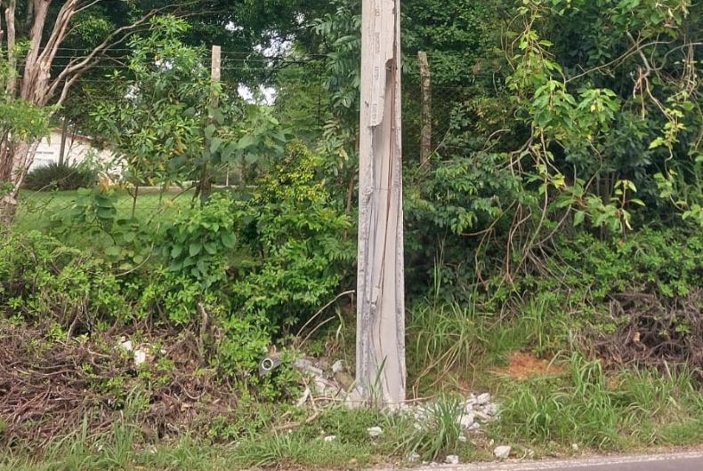 O representante acredita que o estrago no poste seja decorrente de uma possível colisão entre veículos. A equipe já mobiliza a quantidade de caminhões e demais instrumentos para realizar a substituição do poste.