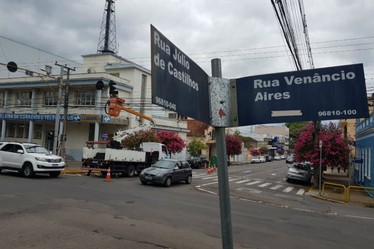 Mais cedo, os funcionários trabalharam na substituição de um semáforo na esquina das ruas Tenente Coronel Brito e Fernando Abott. A estrutura estava sob risco de cair e, por isso, precisou ser trocada. O trânsito chegou a ser bloqueado durante o trabalho, mas foi normalizado por volta das 10h30.