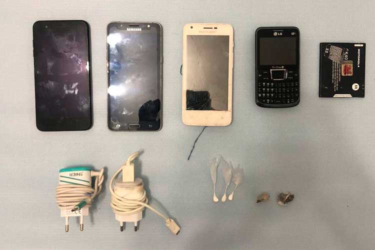 A primeira revista aconteceu por volta das 9 horas, na cela 2 do Anexo do Presídio Regional. No local, foram encontrados três celulares, com acessórios. Já por volta das 17 horas, a cela 2 da área masculina foi revistada, onde foram localizados quatro celulares, com chip e acessórios, além de duas porções de maconha e três porções de cocaína.
