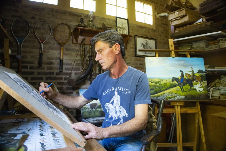 Os primeiros traços desenhados por Jaime Iserhard foram feitos aos 12 anos de idade. Com um carinho especial pelos cavalos e temática gaúcha, o artista autodidata considera a atividade como um hobby. “Com essa atividade há a questão financeira, mas meu foco é atuar como médico-veterinário. As pinturas eu faço no meu tempo livre ou quando há alguma demanda”, conta.