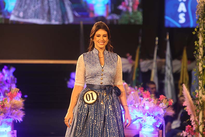 LETICIA AGUILERA LARROSA DA ROCHA – Baronesa da Feira Nacional do Doce (Fenadoce 2024), de Pelotas. Aos 29 anos, é Arquiteta e Urbanista e Técnica em Edificações, atualmente responsável pelos projetos da Construtora Michelon, e mestranda em Arquitetura pela UFRJ. Desde 2019, é dançarina do Grupo Adulto da União Gaúcha, entidade tradicionalista mais antiga do Rio Grande do Sul.