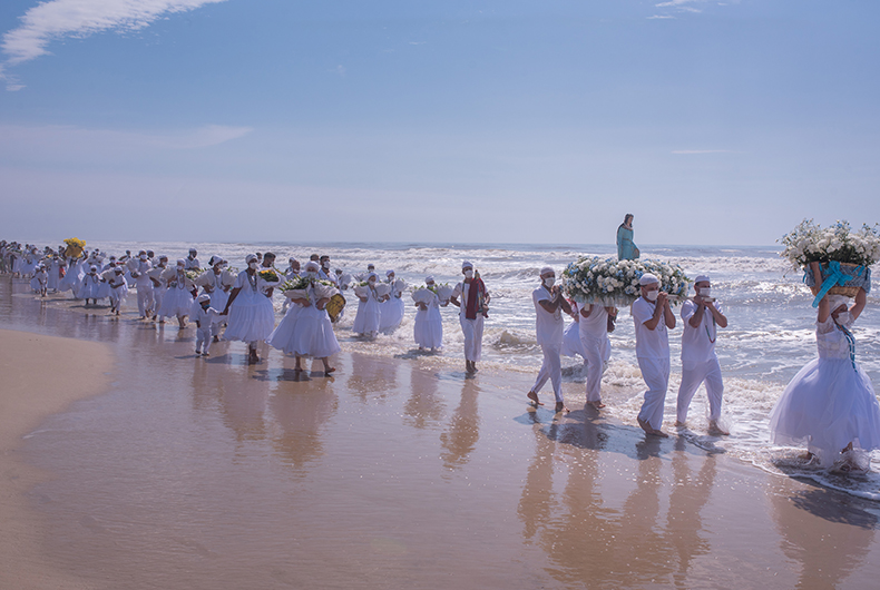 Conduzida em um andor ornamentado de flores brancas, a imagem de Yemanjá, sincretizada com Nossa Senhora dos Navegantes, percorreu as ruas do litoral em direção à orla marítima, onde foi recebida com aplausos. Em razão dos protocolos sanitários, algumas medidas foram tomadas, como uso de máscara e distanciamento.