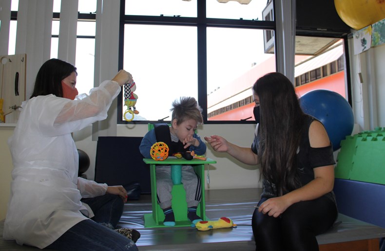 A cadeira é um dispositivo postural personalizado de acordo com as medidas, do quadro motor e neurológico do paciente. Através dela, é possível melhorar o desenvolvimento do usuário, potencializando o equilíbrio; o aumento de estímulos comunicativos, visuais e auditivos; o controle motor; a correção postural; entre outros aspectos. Camila, mãe do Pedro, conta que o serviço é muito importante no desenvolvimento dele e também para ela. “É bom para aprender a lidar melhor com cada situação. Cada dia é uma experiência nova, assim como na maternidade típica, que tem aprendizados, na atípica também temos muito o que aprender. Cada passo é mais lento, tudo é uma vitória e sempre me deparo com situações novas. Ter o acompanhamento é uma ajuda muito grande”.