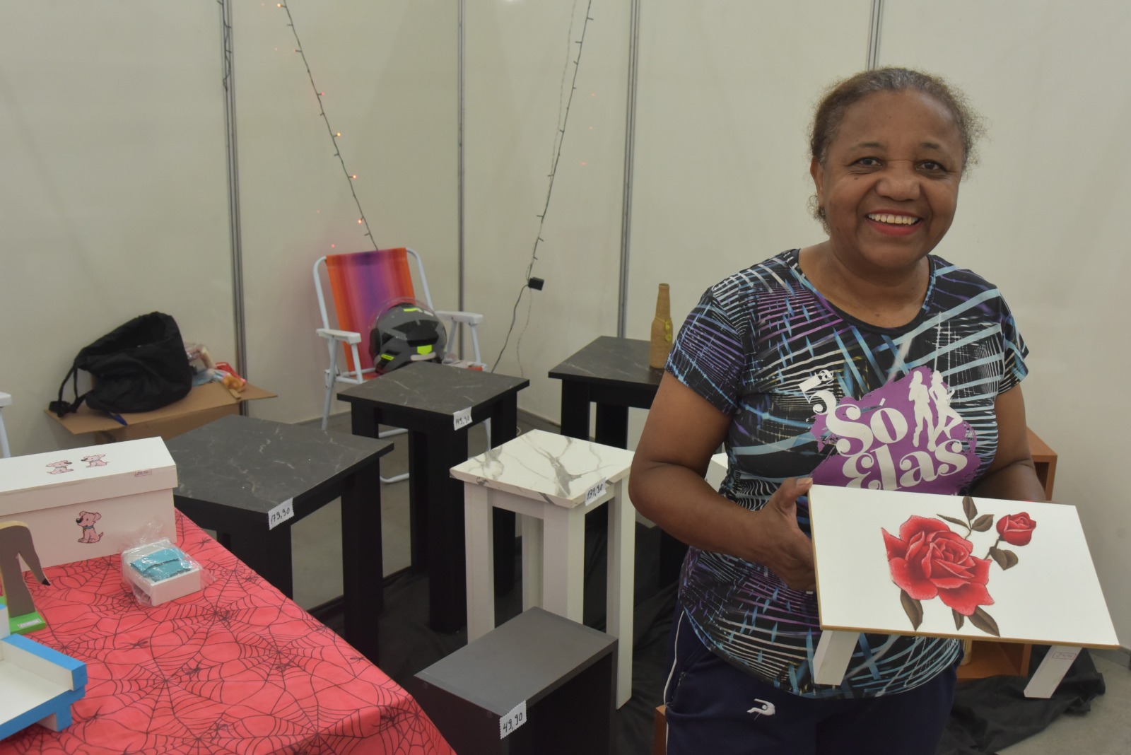Com a carteirinha de artesã profissional desde agosto, ela decidiu transformar materiais recicláveis — como papelão e madeira — em peças decorativas. Para o 1º Salão Gaúcho, levou mesinhas, nichos e objetos infantis, tudo feito à mão. “Este evento é sensacional. Quero mostrar meu trabalho, conhecer gente nova e criar conexões. O artesanato me deu uma nova energia de vida”, comentou.