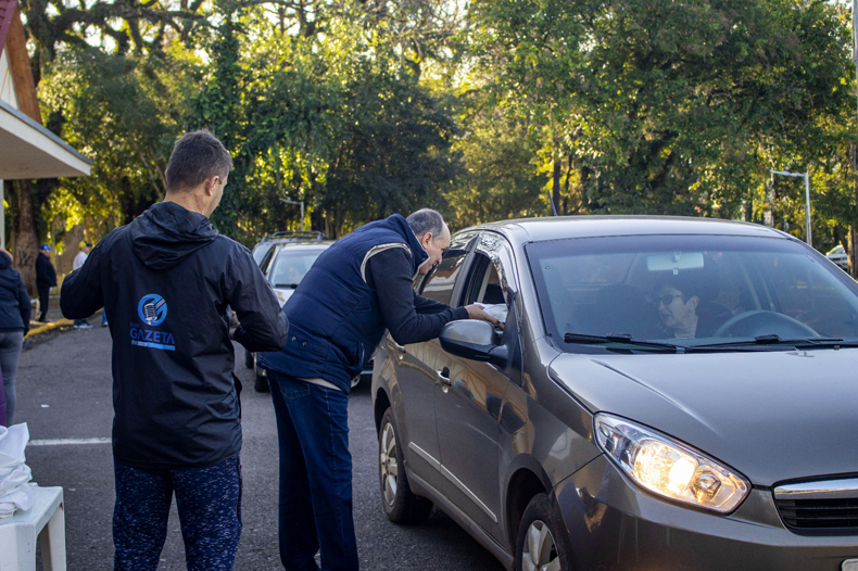 A manhã deste sábado, 1º, foi marcada pela entrega do terceiro lote das Sacolas do Bem neste ano. Os leitores da Gazeta foram em busca de suas unidades a pé e no sistema drive-thru em frente ao pórtico do Parque da Oktoberfest, das 9 até às 10 horas. 400 unidades das ecobags que estampam uma homenagem ao Cinturão Verde foram distribuídas aos participantes que levaram os cupons publicados nas edições da Gazeta do Sul nas últimas semanas e que estavam devidamente preenchidos.