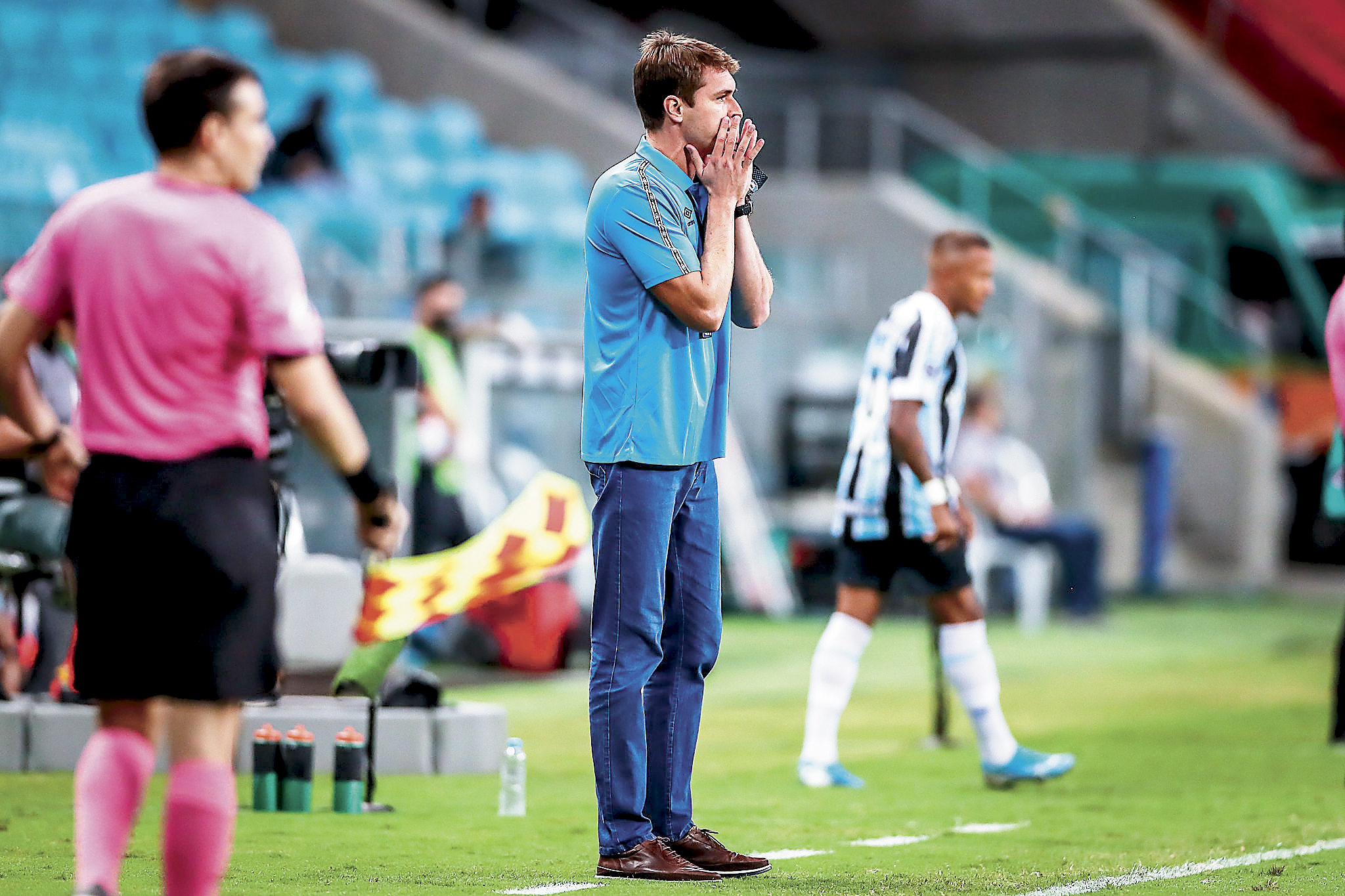 Thiago, de 37 anos, atua há quatro pelo Grêmio. Nesta temporada, esteve à frente do time profissional em cinco partidas – Caxias e Novo Hamburgo, pelo Campeonato Gaúcho, além de dois jogos contra o La Equidad, pela Copa Sul-Americana, e na derrota de 2 a 0 para o Palmeiras, já pelo Campeonato Brasileiro, que antecedeu a chegada de Felipão.