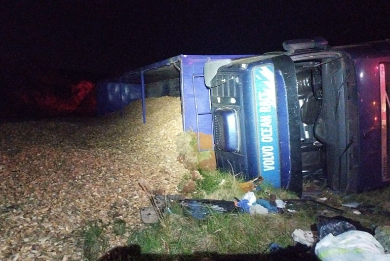 Conforme informações do Corpo de Bombeiros, o motorista de uma carreta Volvo perdeu o controle do automóvel e tombou fora da pista. O homem, de 53 anos, e a caroneira, de 49 anos, sofreram ferimentos. A mulher chegou a ficar com o braço preso entre o chão e a cabine, sendo necessário cavar o chão para retirá-la do local. Os dois foram conduzidos pelo Serviço de Atendimento Móvel de Urgência (Samu) ao Hospital São Sebastião Mártir.