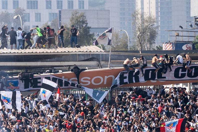 Pelo menos dez torcedores do Colo-Colo, do Chile, ficaram feridos após uma estrutura do estádio Monumental, em Santiago, desabar sobre as arquibancadas nesta sexta-feira, 30. Milhares de pessoas acompanhavam o treino aberto da equipe, que se prepara para o clássico contra a Universidad Católica, que vale o título chileno. Ainda não há a informação sobre vítimas fatais, mas oito pessoas teriam sofrido fraturas.