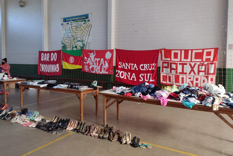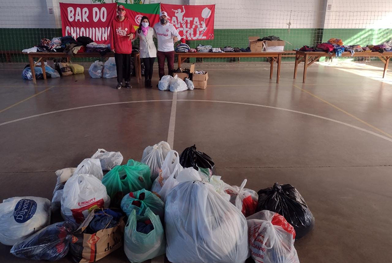 A torcida Guarda Popular de Santa Cruz do Sul realizou neste sábado, 3, um varal solidário. Agasalhos e outras peças de roupa e calçados arrecadados pelo grupo, em campanha, ficaram à disposição de famílias necessitadas, no Ginásio Polo Comunitário, no Bairro Faxinal Menino Deus.
