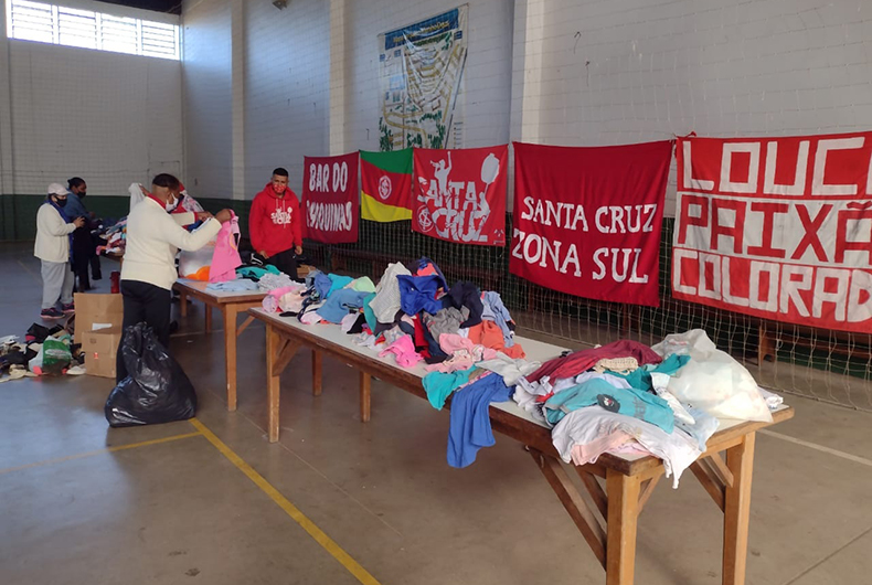 A torcida Guarda Popular de Santa Cruz do Sul realizou neste sábado, 3, um varal solidário. Agasalhos e outras peças de roupa e calçados arrecadados pelo grupo, em campanha, ficaram à disposição de famílias necessitadas, no Ginásio Polo Comunitário, no Bairro Faxinal Menino Deus.