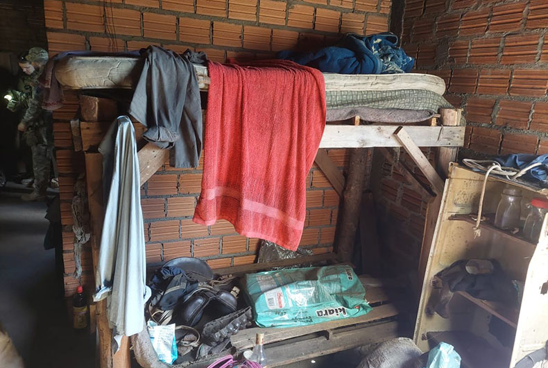 O alojamento era uma peça de alvenaria degradada, sem reboco nas paredes, quase sem móveis e com uma cama que havia sido armada de filetes de madeira velha