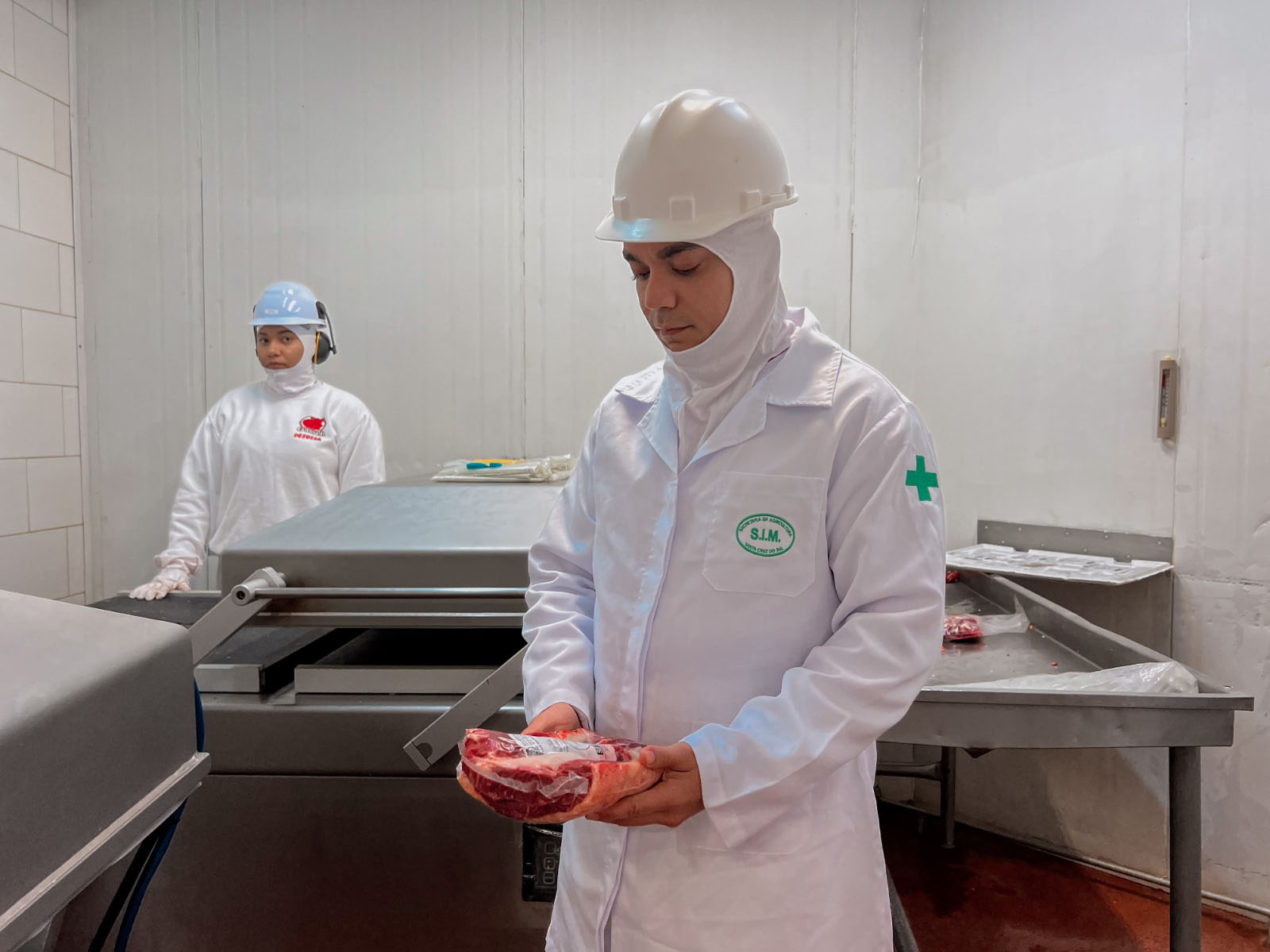 O médico-veterinário acompanha cada etapa do processamento da carne, incluindo o corte, o empacotamento e a rotulagem, para garantir que tudo se mantenha em conformidade com os padrões de segurança alimentar. “Após as inspeções e confirmação de que a carne está dentro dos padrões exigidos, coloca-se as etiquetas apropriadas para a distribuição.