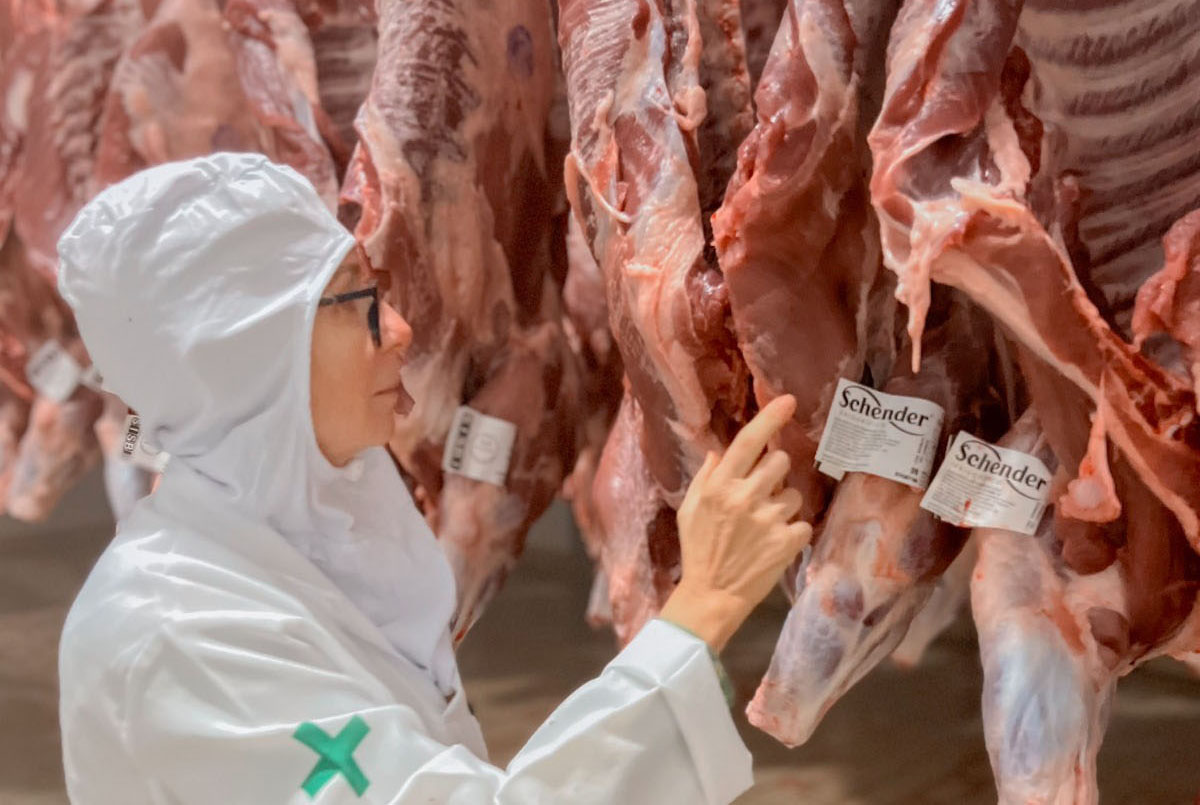 Mas o mais importante, segundo ela, é o trabalho que vem na sequência. “Se tem algum animal com problemas de saúde, de lesão, por exemplo, que tenha que ser abatido antes, ou outro que veio a óbito durante o transporte e precise de necropsia, tudo isso é verificado”, exemplifica. Ou seja: nada passa batido na vistoria de Lúcia, que realiza essa tarefa há mais de 20 anos. Atualmente, são abatidos no Frigorífico Schender cerca de 350 animais por dia, em torno de 6 mil ao mês.