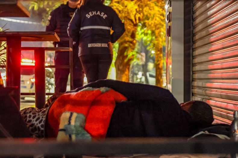 Na sequência, a equipe se deslocou até o entorno da Praça Hainsi Gralow, também no Santo Inácio, onde localizou outro homem desacordado na calçada, em frente a um condomínio. Após vários minutos, ele foi reanimado e conseguiu conversar, mas também não quis dormir no albergue. “Isso é muito comum. São pessoas já debilitadas e, quando bate o efeito do álcool ou da droga, muitas vezes desmaiam no lugar onde estão”, afirma Douglas Ramos.