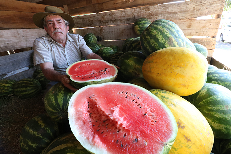 Zimar Rodrigues produz as melancias no Passo da Areia, em Rio Pardo, e há pelo menos 30 anos instala sua banca em Santa Cruz