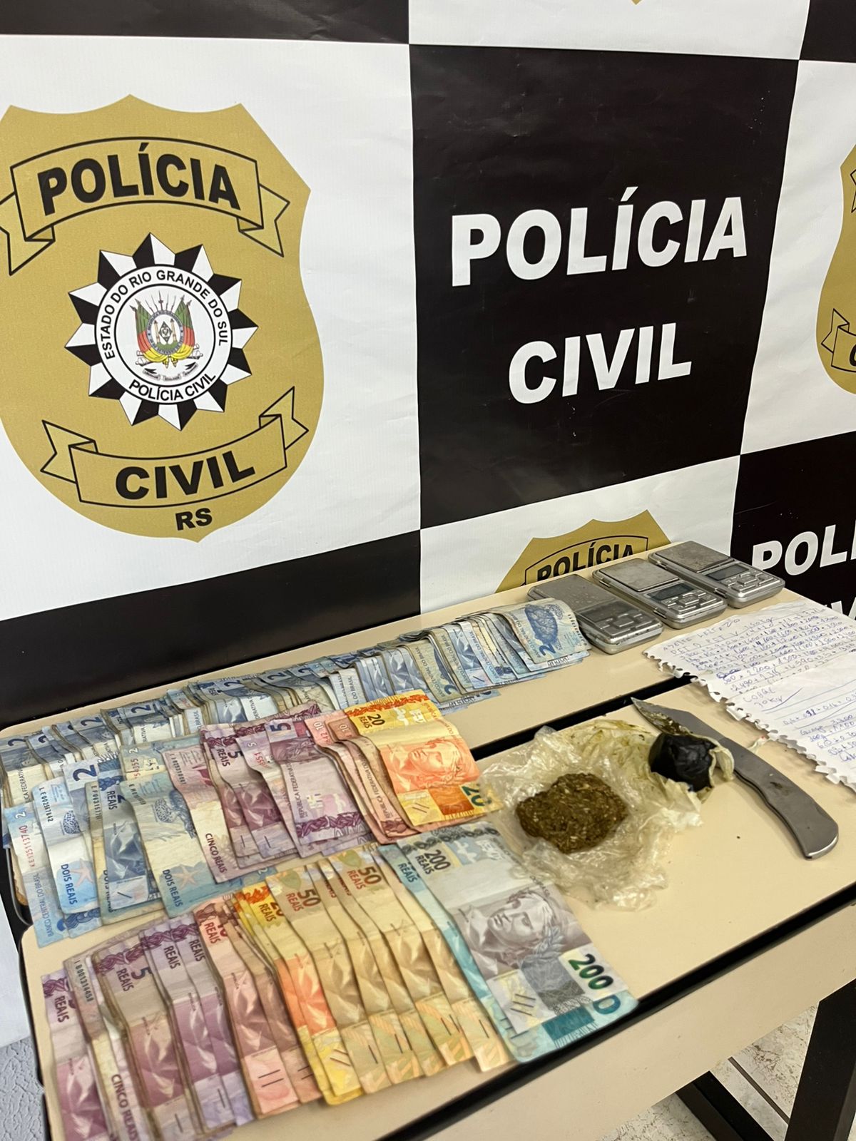 O preso possui antecedentes por furto qualificado, receptação e associação criminosa. No local, foram apreendidas três balanças de precisão, anotações do tráfico, cerca de 33 gramas de haxixe, materiais para fracionamento, aproximadamente R$ 500,00 em dinheiro fracionado, além de outros objetos relacionados à atividade ilícita.