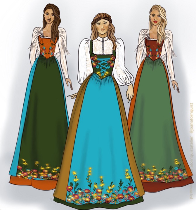 Leio que, em nossa Oktoberfest, os trajes das soberanas estariam inspirados em “diferentes regiões antigas de cultura germânica, como Hamburgo, Braunschweig, Hessen, Baviera e Prússia, bem como na Alemanha moderna, integrada pelos mais diferentes povos e culturas”. Os modelos reforçariam “as tradições, mas também a alegria da nossa festa e da nossa cidade. Representam mais do que valorização da nossa herança cultural, mas o nosso olhar para uma festa contemporânea e multicultural”, destaca a presidente da Festa da Alegria, Roberta Corrêa Pereira.