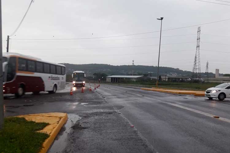 Quem passa pelo Distrito Industrial, em Santa Cruz do Sul, precisa ficar atento ao trânsito no local. Por falta de energia elétrica, que afeta os semáforos, o fluxo de veículos foi desviado para as alças laterais, desde essa terça-feira, 29. Conforme o secretário de Transportes e Serviços Urbanos, Gérson Vargas, a medida foi tomada “para facilitar a travessia”.