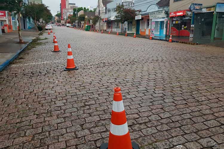 No local são realizados serviços de limpeza da rua, para receber o trabalho de pavimentação em breve. O bloqueio acontece nesta quarta até as 17h30. Conforme o secretário Gérson Vargas, caso a chuva se intensifique o trabalho será suspenso e o trânsito liberado.