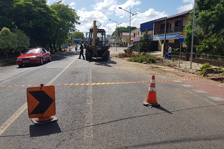 Os trabalhos já haviam começado nessa segunda. A interrupção do trânsito deve ocorrer até por volta das 11 horas. A orientação é que quem segue pela Barão, no sentido Arroio Grande/Aliança, deve desviar ingressando à direita na Rua Maringá e fazer a volta na quadra.