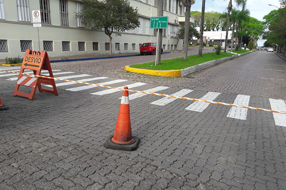 Os condutores que circulam pelo Centro de Santa Cruz do Sul na manhã desta terça-feira, 10, devem ter atenção com algumas intervenções. Um trecho da Rua Ramiro Barcelos estará bloqueado para a realização de atividades do Dia da Maturidade Ativa na Oktoberfest. O local está sinalizado com placas, cones e fitas de segurança e o trecho permite apenas a passagem de ônibus.