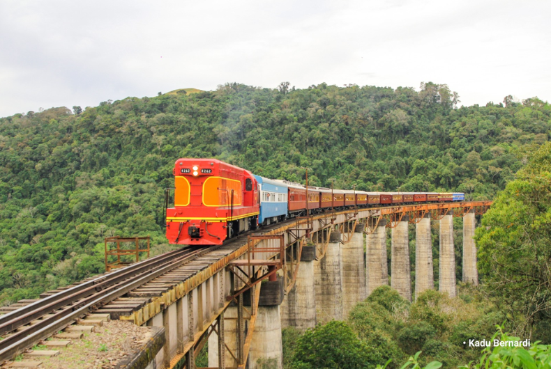 Passeios de trem atravessam viadutos na região do Vale do Taquari e movimentam economia da região | Foto: Kadu Bernardi/Trem dos Vales/Divulgação