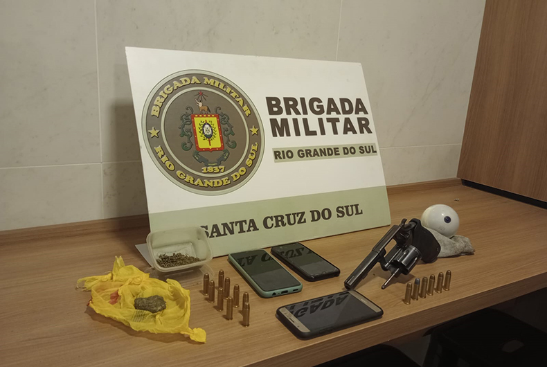 Com o mais novo foi apreendido um revólver calibre 38 com a numeração raspada, municiado com seis munições. Em uma meia, no bolso dele, haviam mais algumas munições do mesmo calibre. E com o jovem de 26 anos foram encontradas 26 gramas de maconha. Os três tiveram os aparelhos de celular apreendidos e foram conduzidos até a Delegacia de Polícia de Pronto Atendimento (DPPA).