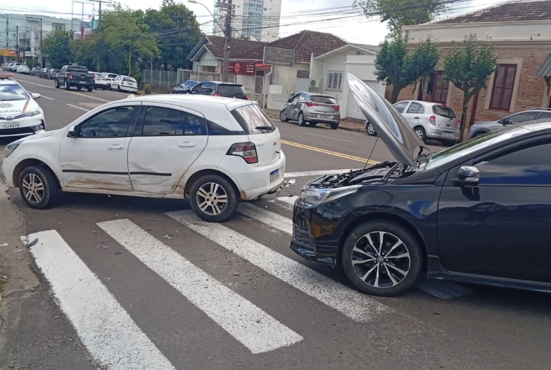 Um acidente de trânsito envolvendo três veículos foi registrado na manhã deste domingo, 19, em Santa Cruz do Sul. Os carros, um Hyundai HB20, um Chevrolet Agile e um Toyota Corolla, colidiram no cruzamento das ruas Carlos Trein Filho e Sete de Setembro, entre os bairros Centro e Goiás, por volta das 10 horas. Não houve feridos, restando apenas danos materiais.