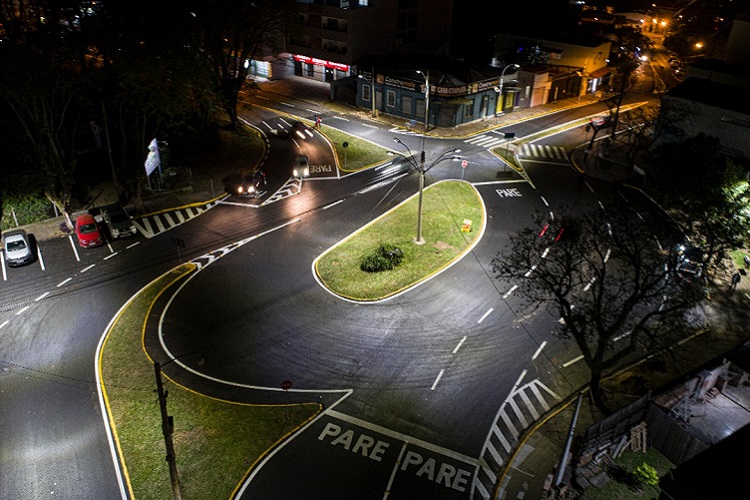 São 13 luminárias no total, com 200 watts de potência em cada uma, para garantir melhor visibilidade aos condutores e pedestres. A intervenção incluiu a modernização e recuperação da rotatória, com ampliação da via.