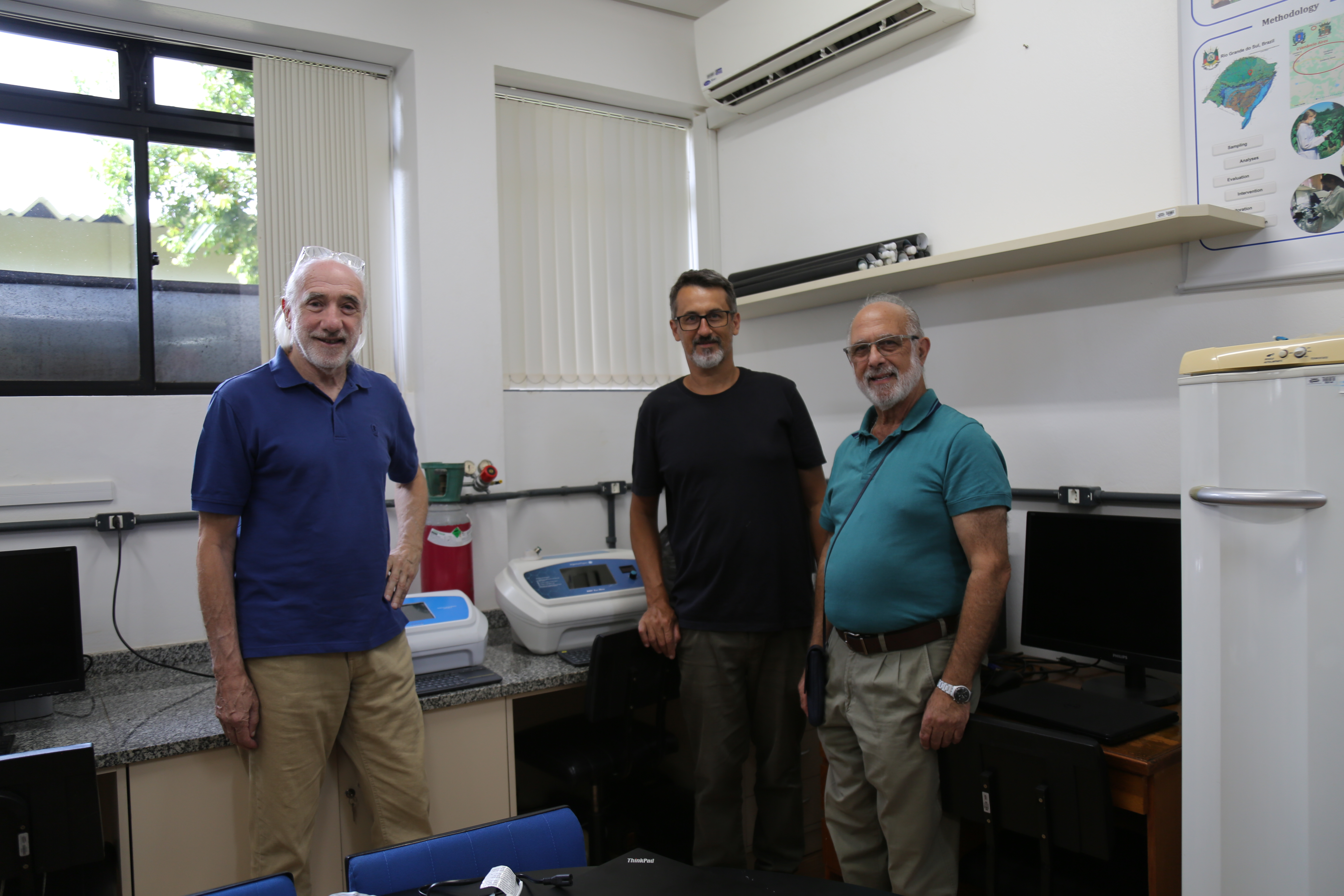 Pesquisadores argentinos: Professor Gilson Helfer entre os pesquisadores Ricardo Daniel de Simone e Rodolfo González (Gabriela Janaína da Silva/AI Unisc)