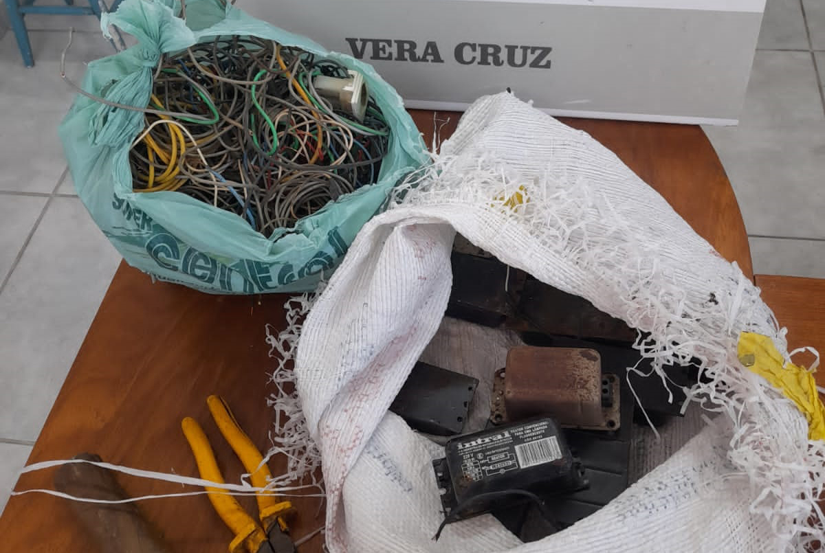 Dois homens, de 29 e 34 anos, e um adolescente, de 13 anos, foram presos em flagrante na manhã desta terça-feira, 17, após furtarem objetos de um prédio antigo na Rua Carlos Francisco, em Vera Cruz. Policiais da Brigada Militar foram informados por telefone de que os indivíduos estariam cometendo o crime e, ao chegarem no local, flagraram os suspeitos portando sacolas com fios de cobre e reatores de lâmpada.