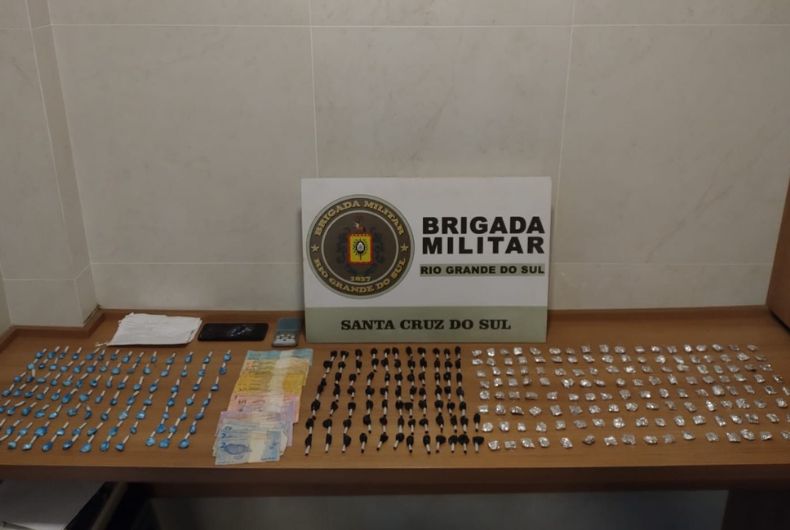 Na ação, foram apreendidas 148 porções de maconha, totalizando 185,8 gramas, 179 porções de cocaína, pesando 136,4 gramas, além de R$ 673,00 em dinheiro, uma balança de precisão e anotações referentes ao comércio de drogas.