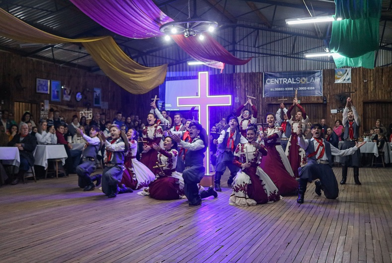 Cerca de 400 pessoas foram no sábado, 11, ao CTG Tropeiros da Amizade para acompanhar a estreia da nova coreografia do grupo de dança juvenil da entidade. Com o tema “Santa Cruz, Cruz Santa“, a equipe homenageia um dos principais pontos turísticos da cidade e pretende chegar à fase final da 18ª edição do JuvENART, a ser disputado no fim de julho, em Restinga Sêca.