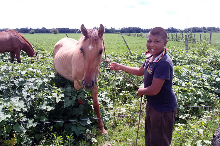 Os animais pastam em uma área na outra margem do Arroio das Pedras, que passa nos fundos do Beckenkamp. Como o pai Isidor trabalha na colheita de tabaco, Pedro divide as responsabilidades da casa com o irmão Mateus, de 15 anos. A mãe faleceu há dois anos, vítima de câncer. “Quero que o gateado melhore da ferida no olho. Eu dei ele para o meu irmão Isidor”, disse Pedro sobre o presente de Natal.
