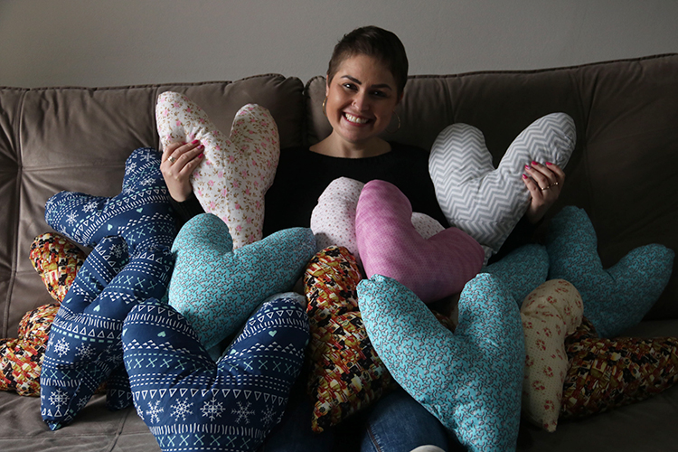“Virou um amuleto que carrego em todas as minhas sessões, e serve para apoiar o braço devido às dores causadas durante o procedimento, que demora em média quatro horas”, afirmou. Na sexta-feira da semana passada, enquanto ela fazia a sessão de quimioterapia, pensou em criar um projeto que pudesse levar um pouco de conforto a outras mulheres. “Ao chegar em casa, gravei um vídeo e postei, pedindo a opinião das pessoas. Muita gente começou a apoiar e uma rede do bem se formou.”