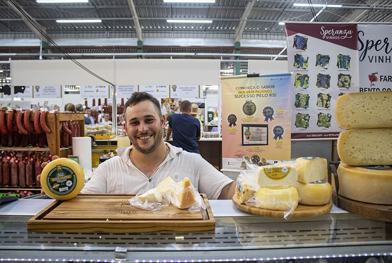 Outro item que chama a atenção no pavilhão das agroindústrias é o queijo. No estande do produtor Natal Comin, 31 anos, são diversos sabores que podem ser degustados e adquiridos pelo público. Este é o segundo ano dele na feira. “Nossa expectativa para este ano é a melhor. Estamos com uma vasta linha de produtos para todos os gostos”, completou o morador de Nova Roma do Sul. Ele também ressaltou que faz planos de instalar uma agroindústria em Santa Cruz do Sul.