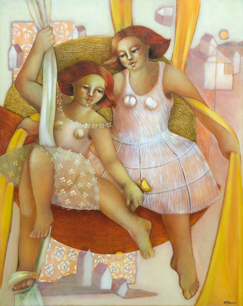 A obra doada por Márcia Marostega é o quadro Amálias: como se fossem anjos. A artista conta que a peça faz parte de uma série que homenageia sua mãe, falecida em 2006.