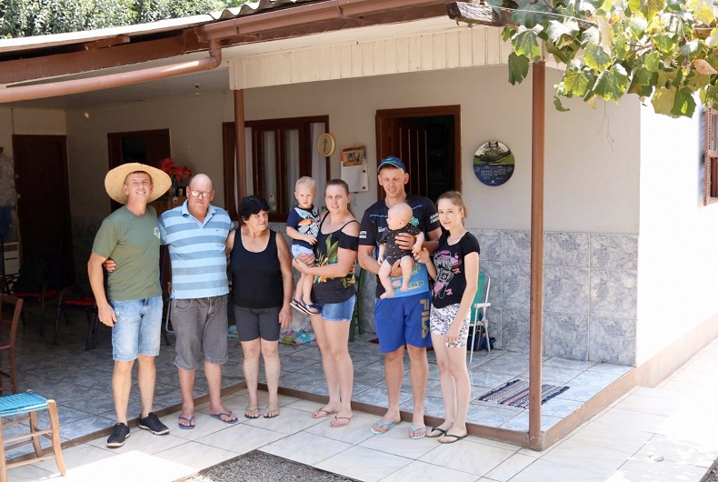 Olá, pessoal! Tudo bem? De terça, 15, para quarta-feira, 16, pernoitamos em Palmitos, já em solo catarinense. Na manhã dessa quarta, chegamos à propriedade de João e Fátima Gaedicke, em Linha Santa Fé, Iraceminha, Santa Catarina. Fechamos 1,3 mil quilômetros. A família nos esperava ansiosa para mostrar o dia a dia do trabalho. A gente havia combinado visita ao filho Joel, mas quem participou bastante foi o pai. Com entusiasmo, ele conta que, quando assumiu, a propriedade já estava parada havia cinco anos. Eles vieram do Rio Grande do Sul para essa localidade, onde os tios já moravam. Passaram por dificuldades.