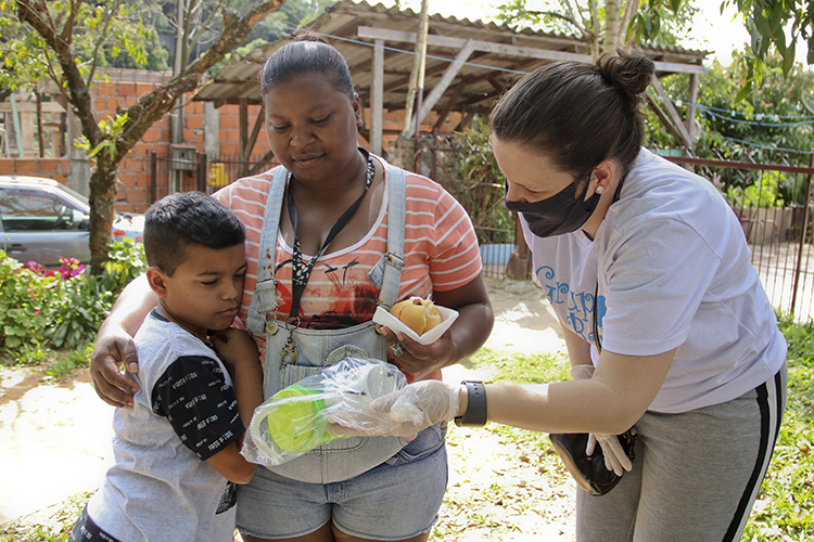 Este foi um dos locais em que os voluntários estiveram ao longo do sábado distribuindo alimentos, guloseimas, brinquedos e brindes. De acordo com a coordenadora do Grupo do Bem, Luciana Tremea, a atividade foi chamada de “Grand Finale” e encerrou uma ação iniciada ainda em abril, em plena pandemia, na qual os integrantes do grupo, ajudados por empresas e instituições parceiras, passaram a distribuir sopa, pão e verduras para famílias em situação de vulnerabilidade no município. “Estamos encerrando um ciclo de um projeto que consideramos absolutamente fundamental durante o período da pandemia. Foram 23 semanas e mais de 25 mil pratos de sopa servidos aos sábados”, contou Luciana.
