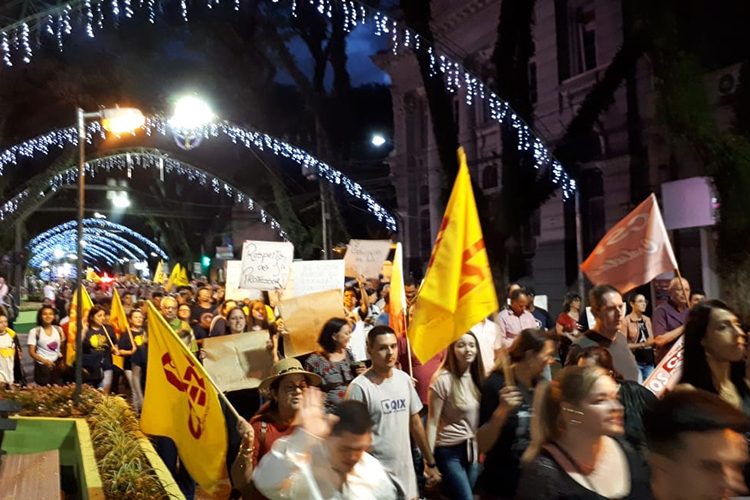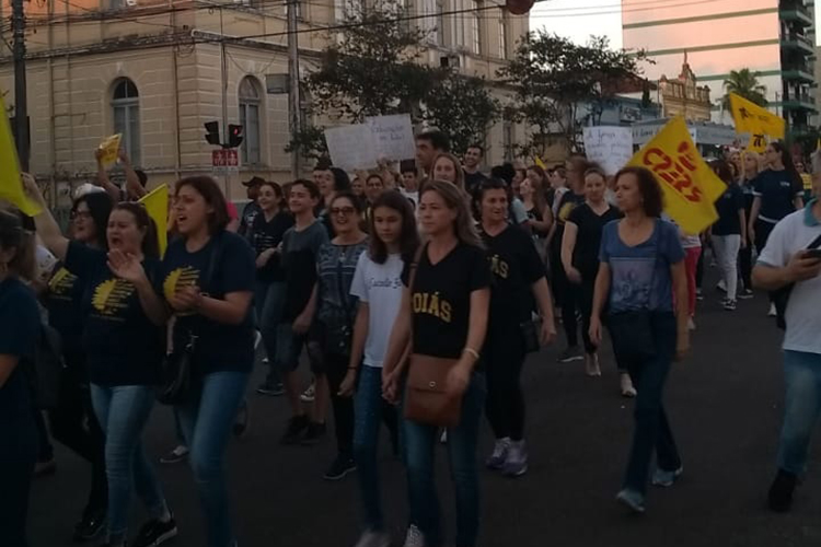 Cartazes em punho. Gritos de guerra entoados com emoção. No fim da tarde dessa quarta-feira, 27, as principais ruas do Centro de Santa Cruz foram palco para um ato histórico. Enquanto mais um dia se aproximava do fim, cerca de mil pessoas protestaram. Cansados, desvalorizados, cheios de revolta e indignação, os professores ganharam o amparo da comunidade. Pessoas que também temem pelo futuro da educação e clamam por uma reviravolta positiva.