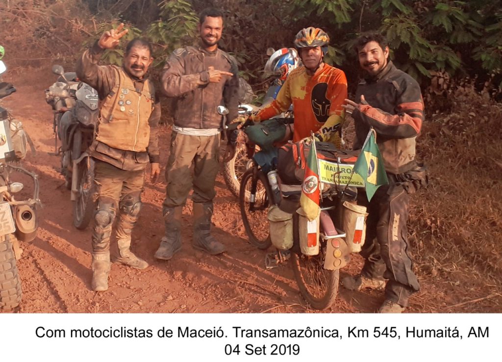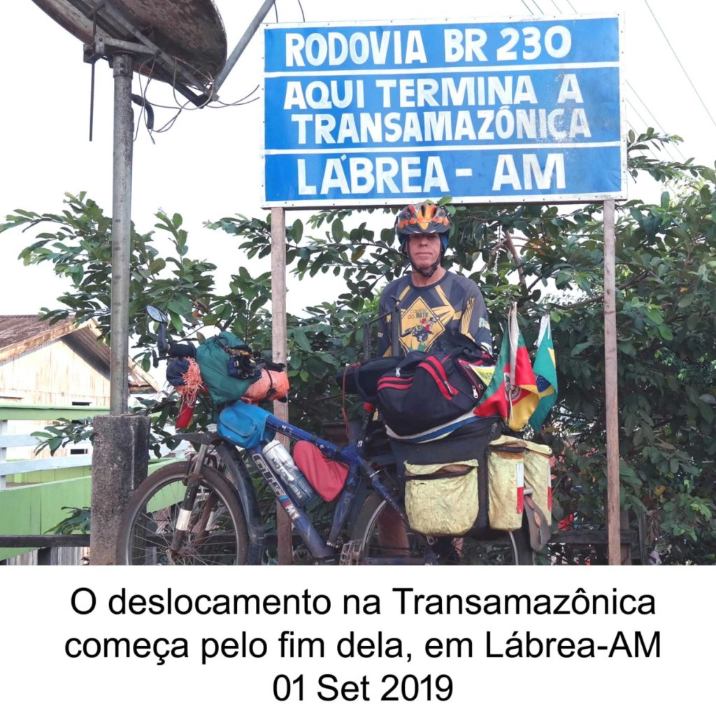 A partida, em Brasília, ocorreu em 2 de agosto de 2019, com um itinerário-padrão de deslocamento: Barra do Garças, Cuiabá, Cáceres, Comodoro, Vilhena, Porto Velho, Humaitá e Lábrea, onde a Transamazônica termina. No primeiro dia de setembro, teve início o deslocamento pela maior rodovia brasileira no sentido leste-oeste. Dentro do Amazonas, a estrada é de terra, com 831 quilômetros, exceto em alguns trechos urbanos asfaltados, até chegar à divisa do Pará. Plana e praticamente sem curvas, é boa de pedalar, com abundância de água em toda a extensão. O grande contratempo é a poeira levantada pelos veículos, que paira no ar durante muito tempo. No Pará, a via muda totalmente, tornando-se extremamente irregular, com aclives e declives íngremes, que parecem não ter fim.
