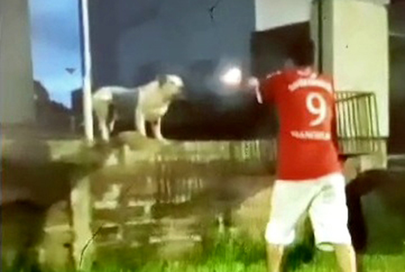 É uma cena cruel, e fica difícil até compreender como um ser humano tem a capacidade de executá-la. Parado como se estivesse obedecendo a uma ordem, em cima de uma mureta de concreto, o cão Thor, da raça pitbull, em sua inocência, não conseguia discernir o que o seu tutor estava prestes a fazer, apontando uma arma de fogo para sua cabeça. “Dá-lhe!”, gritou um outro homem poucos milésimos antes de o tutor, de 22 anos, efetuar um disparo de revólver no animal.
