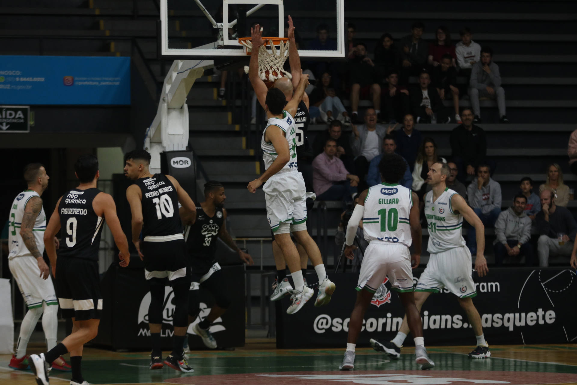 Embalados pela torcida, os gaúchos buscaram o marcador e levaram o placar a seu favor no intervalo, 36 a 35. O retorno para o terceiro período contou com uma arrancada dos paulistas, 14 a 0 e retomada da liderança. Com enormes dificuldades para pontuar, os primeiros escores da equipe santa-cruzense no quarto vieram faltando três minutos, ainda assim os corintianos entraram na etapa final com 56 a 42.