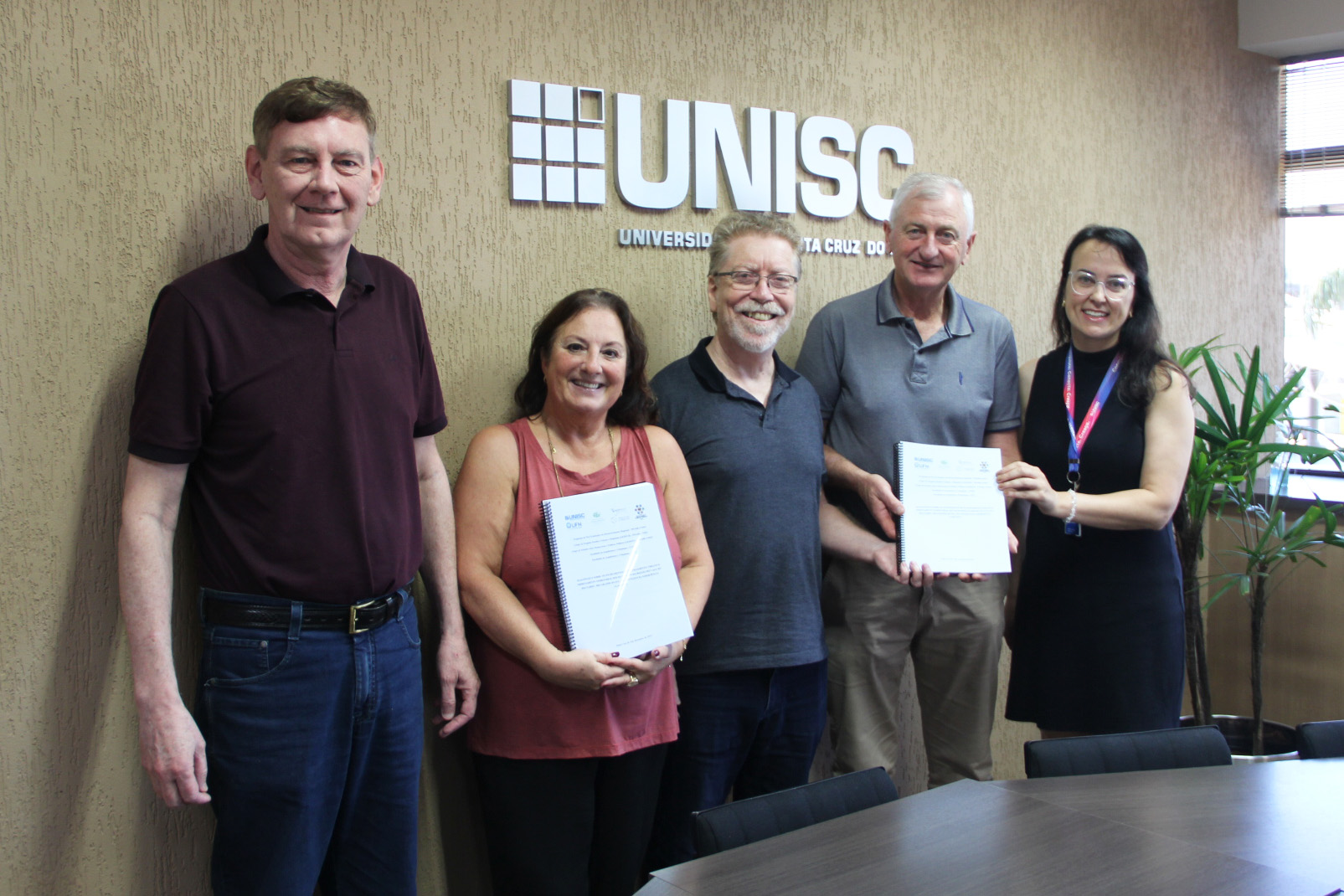 O coordenador do projeto, Rogério Leandro Lima da Silveira e um dos integrantes, Luiz Carlos Schneider, da Universidade de Santa Cruz do Sul (Unisc), apresentaram os resultados do trabalho para o presidente do Corede/VRP, Heitor Álvaro Petry; a vice-presidente, Carmen Lúcia de Lima Helfer e a secretária executiva, Diana Filipina Anton.