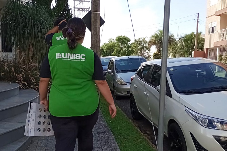 Seguindo as atividades da Campanha “Unisc contra a Dengue”, bolsistas do Programa de Pós-Graduação em Promoção da Saúde da Universidade de Santa Cruz do Sul (Unisc) e do Pró-Saúde distribuíram materiais informativos pelas ruas no entorno do campus de Santa Cruz do Sul. A ação atingiu, diretamente, mais de 600 pessoas. No entanto, este número é três vezes maior, visto que estas pessoas compartilham as informações com familiares e amigos.