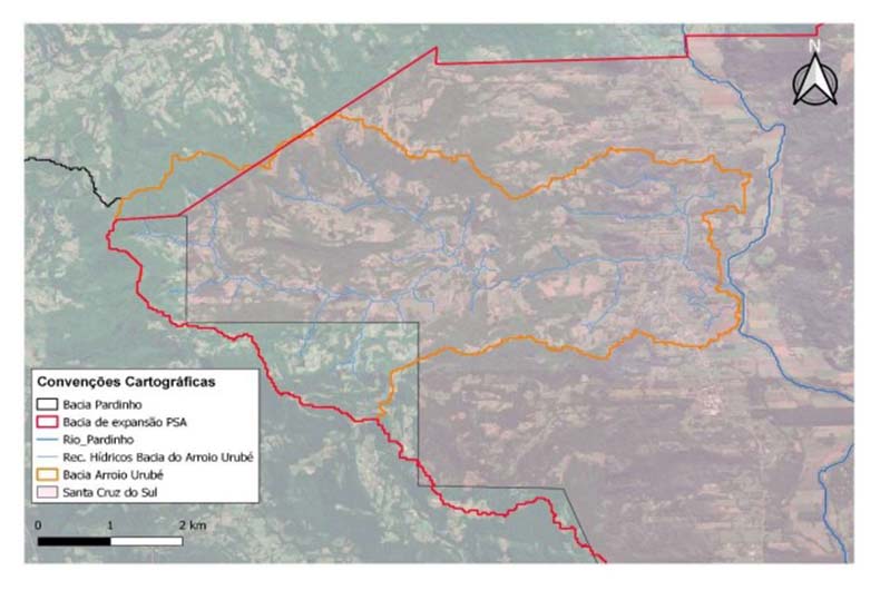 O Arroio Urubé é um dos afluentes do Rio Pardinho, principal manancial de abastecimento de água de Santa Cruz do Sul. Aliado ao crescente nível de degradação e a baixa disponibilidade hídrica em épocas de escassez, justifica-se a escolha do principal afluente na Sub-bacia do Arroio Urubé, a montante da captação de água da Corsan. O trecho estabelecido compreende uma área com 24,35 quilômetros quadrados e é ocupado principalmente por atividades agrícolas.
