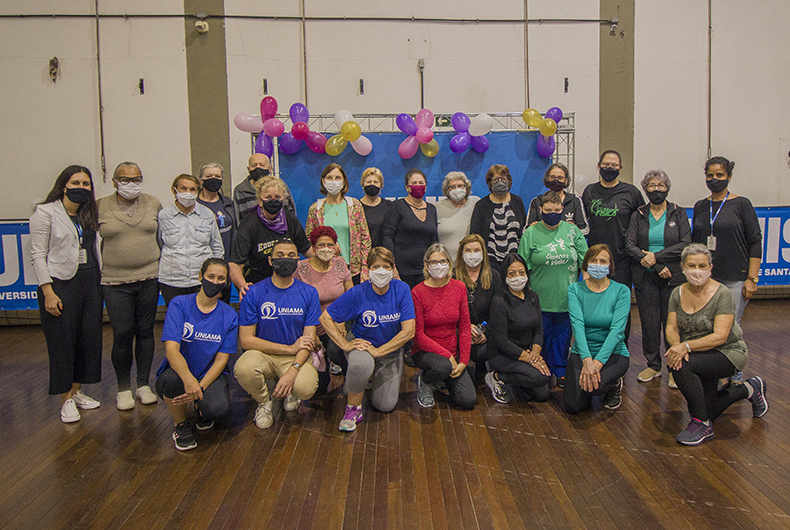 O curso de extensão multidisciplinar Universidade do Adulto Maior (Uniama) retomou as atividades presenciais na tarde dessa segunda-feira, 9, na Universidade de Santa Cruz do Sul (Unisc). Com a pandemia, desde março do ano passado a interação entre alunos e professores ocorria somente pela plataforma Meet. Na primeira aula de Ginástica Dança/Funcional, que teve início às 15h30, no ginásio da Unisc, 33 alunos participaram. A atividade prática, que durou cerca de uma hora, contou com orientação da professora Ursula Müller e do bolsista voluntário Leonardo Senna.