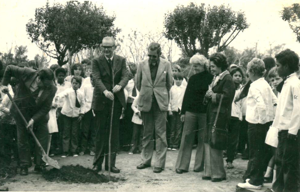 Na foto abaixo aparece, amparando uma das mudas plantadas, o fundador da Gazeta do Sul, jornalista Francisco José Frantz (1917-1982), ele que foi um líder e entusiasta do florestamento. A muda que ele está segurando talvez seja uma das que, infelizmente, foi colocada abaixo em campanha de “arborização segura”, eufemismo que criaram para podas drásticas e supressões. Parece triste sina de nossa espécie: uns plantam, outros derrubam.