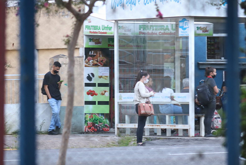 Nesta terça-feira, 22, pessoas esperavam o ônibus utilizando máscaras em Santa Cruz